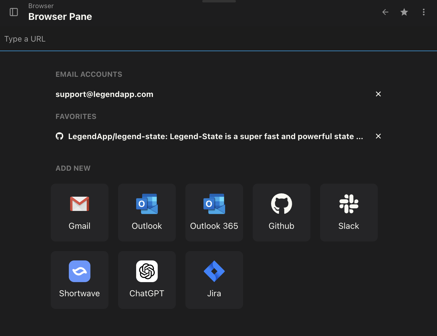 The Email Pane is now the Browser Pane. Expanding on the concept of embedding email apps, the Browser Pane allows you to open any website or web app directly within Legend.