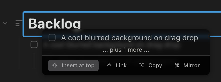 In addition to fixing some minor bugs, dragging now shows only one line and lives below the cursor to stay out of your way while finding a target. And it has a cool blurred background :)